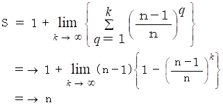 n 回ボタンを押したときに初めて 1 が表示されたときに n 点得るとします。 すると、 その期待値 S は次のようになります。