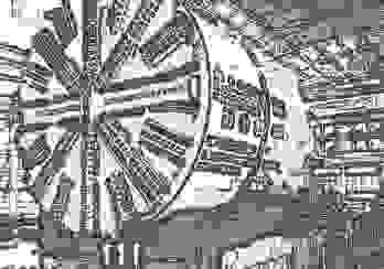 シールドマシーンを用いて建設されたトンネルの代表は、 関門鉄道トンネル、 稲荷山トンネル、 東京湾アクアラインです。 シールドマシーンは、 掘りかけのトンネルの先端( 切羽 )にカッターフェイスという回転板を押し付けることで掘削します。 カッターフェイスには、 おろし金のような刃が放射状に配置されています。 その素材は、 超硬合金 や タングステンカーバイト とのことです。 1時間で 120〜180cm 程度削れるそうです。 そのシールドマシーンはオーダーメードで使い捨てだそうです。 東京湾アクアライン建設のために作られた8基のシールドマシーンは、 世界最大規模で直径が 約14m あったそうで、 技術資料館「 うみめがね 」に行けば、 その複製を見ることができます。