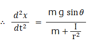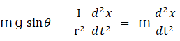加速度は g sin θ より小さくなっています。 したがって、 滑り落ちるよりも転がり落ちる方が遅いことがわかります。 また、 慣性モーメントが小さいほど、 半径が大きいほど、 速く転がり落ちることもわかります。