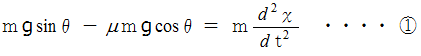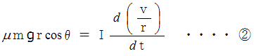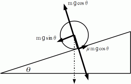 の傾斜を転がり落ちるときの加速度はいくらでしょうか?物質は滑り落ちようとしますので、 斜面からはそれに逆らうような摩擦力を受けます。 摩擦係数を
