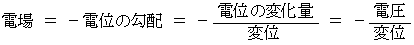 電場の方向に変位すればするほど、 その変位に比例して電位は高くなる。電位の変化量とその変位の間には次の式が成り立つ。