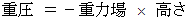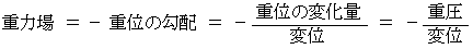 重力場の方向と逆方向に変位すればするほど、 その変位に比例して重位は高くなる。 重位の変化量とその変位の間には次の式が成り立つ。