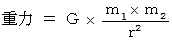 とすると、 重力を及ぼす物質からその点までの距離との間に、 次の式が成り立っている。