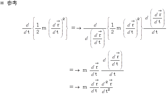 が時間的に変化しないことを示しているのですから、 力学的エネルギー保存の法則が成り立つことが解ります。 基本定理から重要な定理を導く醍醐味がここにあります。では、 次に、 ニュートン力学の基本定理である運動方程式から、 仕事 と 運動エネルギーの関係を導いてみます。