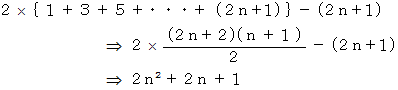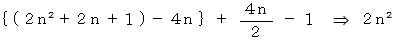 この三角形の辺や頂点上に存在する格子の交点の数は 4n です。