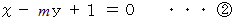 を消去して得られる x と y との関係式が、 2つの直線の交点の軌跡を示します。
