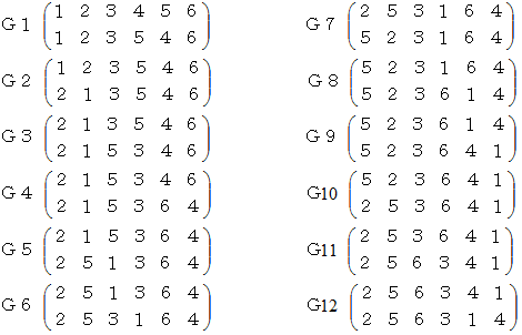 4と5の互換をおこなう演算を 演算子 [4,5] で表すと、G1〜G12 の互換を担う演算子は、それぞれ次のようになります。