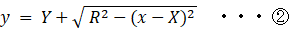 ( x−X )2 + ( y−Y )2 = R2 ・・・ @
