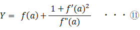 1 + f '(a)2 + ( f (a)−Y ) f "(a) = 0 ・・・ I