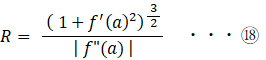 Q が 求めていた 2次元曲線:y = f (x) 上の点A( a, f (a) )における曲率半径です。