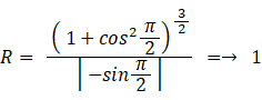 例えば、2次元曲線:y = sin x 上の点A( π/2, 1 )における曲率半径 ( R ) は次のようになります。