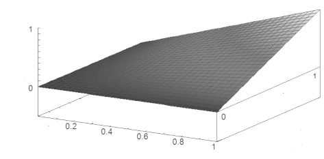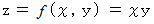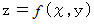 に、 上からXY平面に垂直な平行光線を当てた時、 曲面の陰になる部分のXY平面よりも上側の体積は、 次の式で求めることができます。