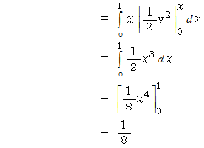 に、 上からXY平面に垂直な平行光線を当てた時、 曲面の陰になる部分のXY平面よりも上側と、 XY平面を次の線たちで囲まれる範囲を垂直に打ちぬく三角柱とが重なる部分の体積を求めてみましょう。