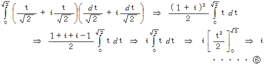 次に、 実数軸上の座標値 0 から 1 の間の直線分に沿って線積分してみましょう。