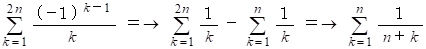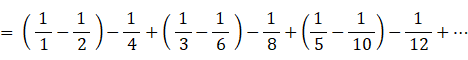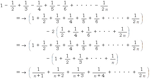 各項の絶対値の和が収束しない無限級数については、級数の足す順番を入れ替えることは禁じ手です。それをしてしまうと誤った結論に達します。
