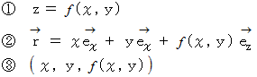 がいろんな実数の値をとったときの点の集合が曲面になりますので、 これ自体が曲面を表しているとも言えます。 位置ベクトルを用いる