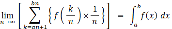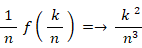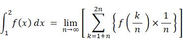 これを k = 1 〜 n まで合計すると共に n を無限大にすれば、図形の面積になる。つまり、