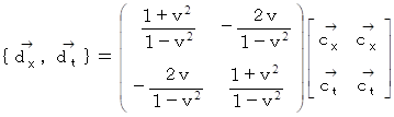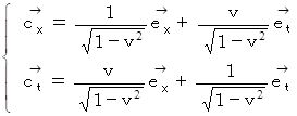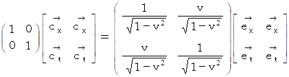 ローレンツ変換により、基底の要素は大きさは