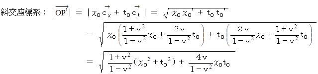 ローレンツ変換は、時空間の位置ベクトルの表現方法の変換であって、位置ベクトルそのものは変化せず、したがってその大きさも変化させません。その謎を解くキーワードは「斜交座標系での位置ベクトルの大きさの求め方」にあります。今回は、その謎に迫りましょう。