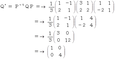 固有空間では、 演算テンソルQの表現行列は次のように座標変換されている。