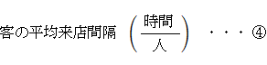 たとえばマッサージ店のように、生産と販売と購入と消費が同時に行われるようなサービス商品を提供している店において、サービス提供が開始されるまでの待ち時間について考えてみましょう。考えやすくするため、マッサージ師は1人であるとし、そのマッサージ師は客がいないときのみ休憩を取るものとします。その店では、マッサージ師がサービスを提供する時間は客1人あたり常に 20分間 です。店内には常時客が3人います。現在サービスを受けている客が1人とサービスを待っている客が2人です。というのも、店の外では行列ができているのですが、店内が3蜜にならないよう、会計が終わって客が出てきたらそれと入れ替えに店内ヘと誘導するシステムになっているからです。便宜上、会計は瞬時に終わるものとしてください。