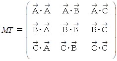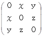三角形の頂点 A, B,C の相互の間隔 ( 辺の長さたち ) を表す行列を次のように表すことにします。