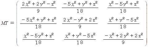 行列の要素をすべて2乗してから2で割ると次のようになります。
