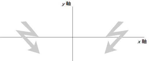 点 ( x, y ) と 点 (−x, y ) は y 軸に対して線対称な関係です。
