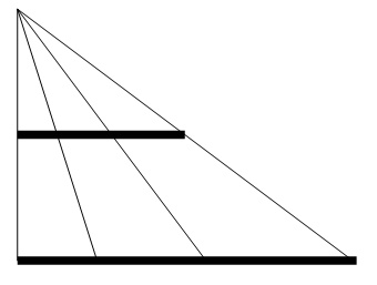 上図より、長さが1の線分を構成する点の集合 から 長さが2の線分を構成する点の集合 への写像は1対1対応になっていることが分かります。ですから、2つの集合は同等であり、濃度も等しいことがわかります。ということは、後者の集合の隣どうしの要素の間隔は前者の2倍になっているけど、空間も2倍に拡大していると言うことができます。