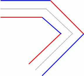 たとえば、 下図のような道であれば、 3つのパーツに分割し、 真ん中のパーツを反転してつなげると、 赤と青の直線を路肩とし黒の中央分離帯が描かれた直線道路になります。