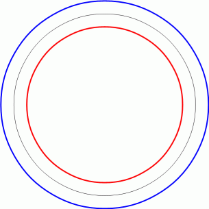一方、 青色の円の面積から赤色の円の面積を引くと、