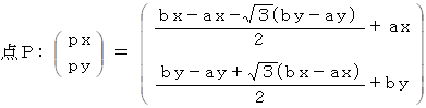 まず、 点Aが原点となり点Bが x 軸上に存在するような特殊座標系を考えます。 そこではもう一つの頂点( 点P )の座標は次のようになります。
