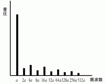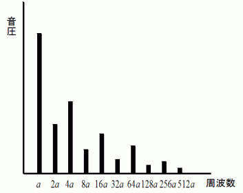 の同じ高さの音です。 ただし音色は少し異なります。 図1はバイオリン、 図2のチェロのイメージです。さて、 シンセサイザーを使って図3のようなスペクトラムで表される音を作ります。