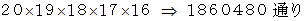 すべての順列の場合の数: