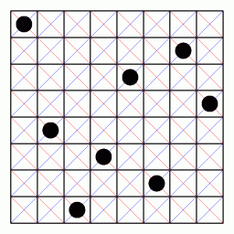 まず、8個のクィーンを次のように斜めに仮に並べます。