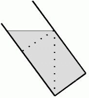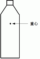 ヒント : ペットボトルを反時計回りに傾けていったときに、重心が床とペットボトルとの接線の鉛直線上よりも左側にくると、ペットボトルは転倒します。 空のペットボトルの重心は下から 11cm の所にあります。