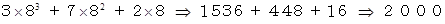 いい考え方があります。 4 と 9 の数字がない代わりに、 8 と 9 の数字がなくても同じことであるというのが、 ヒントです。 そうですね、 8進法を使えばいいのです。 10進法を2進法に直すには、 どんどん2で割っていき、 その余りを逆さに並べるとよかったですね。 同様にして、 10進法の 2000 を8進法に変換します。