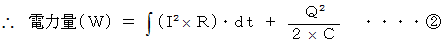 は、 キャパシタが蓄えている静電エネルギーである。 電力量とは、 電源が供給した電気エネルギーのこと、 または、 電流がした仕事のことで、 単位は、