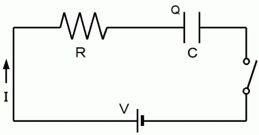 まず、 オームの法則を、 「 レジスタンスとキャパシタを直列に繋いだ直流回路 」 に拡張してみよう。 それは、 次の式