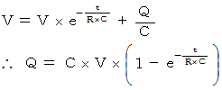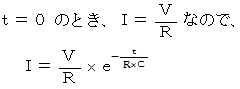 この式から、 キャパシタに蓄えられる電荷量の、 時間による変化がわかる。