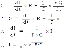 この式から、 この回路における、 電流の、 時間による変化がわかる。