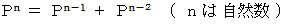 したがって、 この数列は、 准フィボナッチ数列であることがわかります。 そこで、 次のようなプログラムを作って実行すると、 具体的な数値として、 この順列を表すことができます。