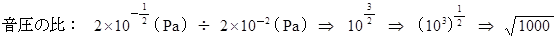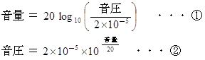 「 フェヒナーの法則より、 音圧が 1000 倍 になっているのだから、 音量は