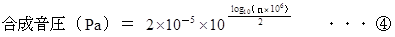 1音源の音量が 60 dB のとき、 n 個の音源の合成音圧は次の式で与えられます。