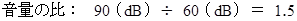 音圧が 1000 倍 になると、 音量は 60 dB 増えます。