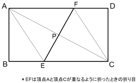 b ) の長方形を、向かい合う頂点が重なるように折ったときにできる折り目の線分は、横の辺をどんな比率に分割するでしょうか?