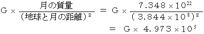 月による、 地球の重心が存在している位置の重力場の大きさ :
