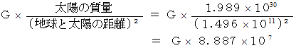 太陽による、 地球の重心が存在している位置の重力場の大きさ :