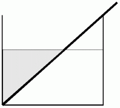 昔むかし、 ある村で、 農民たちは領主から一定の土地を与えられ、 それぞれの家で稲作から酒造りまでをさせられていました。 この村の人たちは酒さえあれば生きていけるという特殊な体をしていました。 1年に1回、 酒が完成した次の日に、 農民は全ての酒を大きな酒樽に入れて村の酒蔵まで運ばなければなりません。 そこには、 大きな直方体の容器が置かれています。 そして、 その中に自分が運び込んだ酒を全て注ぎ入れさせられます。 すると、 その容器は横から見ると図のようになります。