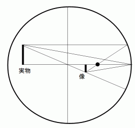 凹面鏡では、 物質が焦点よりも遠い所にある場合 ( スプーンの場合 )は、 鏡に映る物質の像は縮小した反転像( 倒立像 )になり、 物質が焦点よりも近い所にある場合は、 拡大した正立像になります。